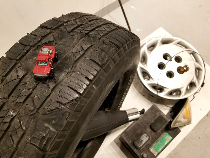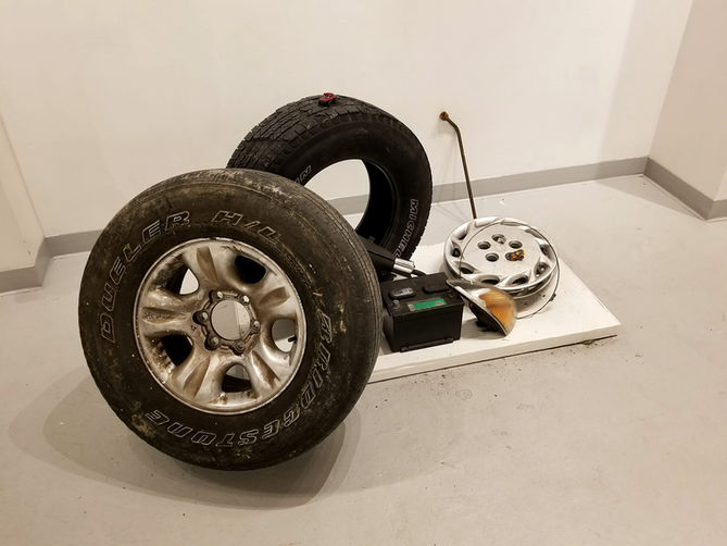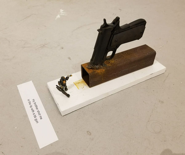 "My work is a combination of found objects that resonate with my personal upbringing within a hetero-normative family. Toxic and fragile masculinity runs deep within my family’s dynamic but has left me and my siblings questioning their standards. My siblings and I now challenge these notions but looking back on our childhood, filled with social troupes, we realize the toxic behaviors ingrained in society. These ideas and experiences, within our patriarchal society, reinforce horrible power systems that should be ultimately erased. The objects are socially “male” in appearance but are weathered and broken to capture this fragility."